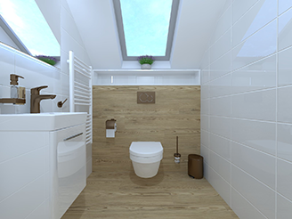 Stejná koupelna, jiný pocit. Podívejte se na tuto koupelnu. Světlé obklady, dřevěný dekor, závěsné WC. Teď si představte totéž umývadlo, stejné dlaždice, stejný prostor — a přesto pokaždé jiná atmosféra. Jak je to možné? Odpověď je překvapivě jednoduchá: koupelnové doplňky.