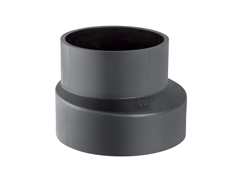 PE redukce excentrická, krátká, d = 56 mm, d1 = 50 mm, pro odvodnění budov a pozemků, materiál PE.