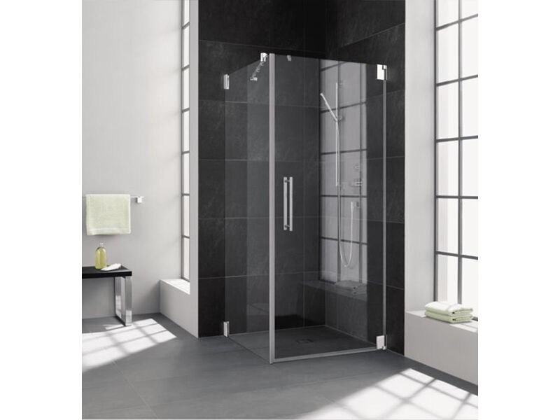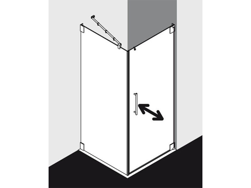 Bezrámové sprchové dveře Pasa s jedním skleněným panelem, rozměr 88,5x220 cm, + bezrámová boční stěna Pasa, rozměr 88,5x220 cm.