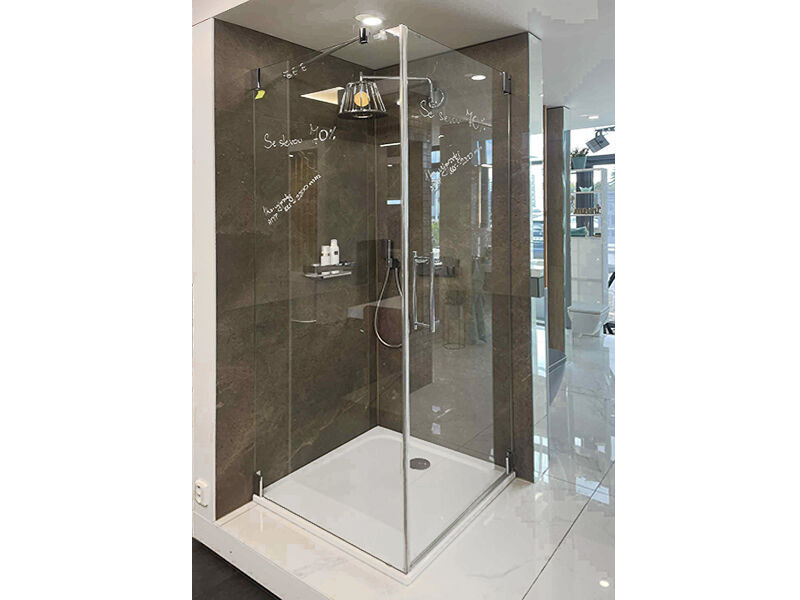 Bezpečnostní sklo 8 mm s povrchovou úpravou KermiClean, sklo čiré, profil stříbrná vysoký lesk. tloušťka skla 6 mm s povrchovou úpravou Kermi Clean, hliníkové profily, povrchová úprava stříbrná lesk.