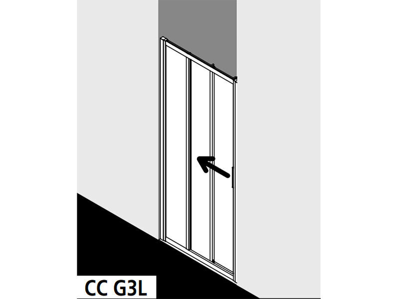 Třídílné posuvné dveře Kermi Cada XS se dvěma posuvnými segmenty a jedním pevným polem, otvírání pouze na jednu stranu, rozměry 87-91x200 cm, šířka vstupu 44 cm, pravé, eloxované hliníkové profily v bílé povrchovéúpravě, pochromovaná madla z kvalitního plastu, bezpečnostní čiré 4 mm sklo s povrchovou úpravou CadaClean.