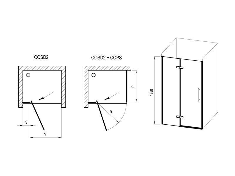Otočením výrobku o 180° získáte levou nebo pravou variantu otevírání dveří. Výrobek se montuje do vyzděné niky, nebo v kombinaci s pevnou stěnou COPS, na lité vaničky RAVAK Perseus Pro, Perseus Pro Chrome, Gigant Pro, Gigant Pro Flat, Gigant Pro Chrome nebo přímo na podlahu se zabudovaným odtokovým žlabem či podlahovou vpustí. Vzpěra je součástí balení. Použitím nastavovacího profilu CONPS lze sprchové dveře rozšířit o 25 mm (na straně umístění magnetu a je využitelný pouze při instalaci v nice).