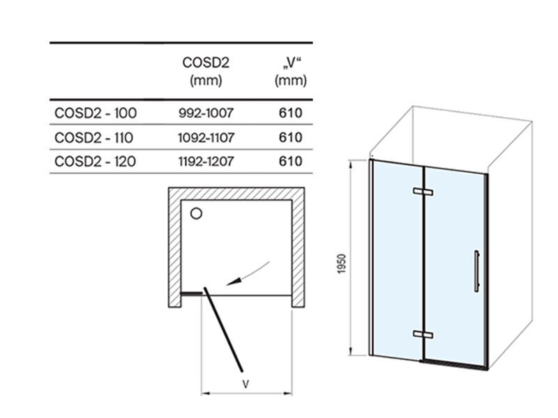 Otočením výrobku o 180° získáte levou nebo pravou variantu otevírání dveří. Výrobek se montuje do vyzděné niky, nebo v kombinaci s pevnou stěnou COPS, na lité vaničky RAVAK Perseus Pro, Perseus Pro Chrome, Gigant Pro, Gigant Pro Flat, Gigant Pro Chrome nebo přímo na podlahu se zabudovaným odtokovým žlabem či podlahovou vpustí. Vzpěra je součástí balení. Použitím nastavovacího profilu CONPS lze sprchové dveře rozšířit o 25 mm (na straně umístění magnetu a je využitelný pouze při instalaci v nice).