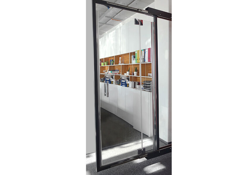 Kermi Filia XP jednokřídlé kyvné dveře do niky, s pevným polem vlevo.