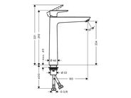 Páková umyvadlová baterie, ComfortZone 240 ,délka výtoku 183 mm, normální proud, průtok při 0,3 MPa: 5 l/min, keramická kartuše, nastavitelné omezení teploty, barva matná černá.