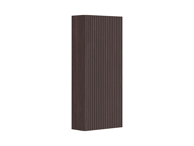 Závěsná střední mělká skříňka Cubito Style, rozměry 35x15x80 cm, materiál dřevotřísková deska tloušťka 16 mm potažená PVC fólií, 1x dveře levé/pravé, 2x skleněné police, dekor tmavý ořech.