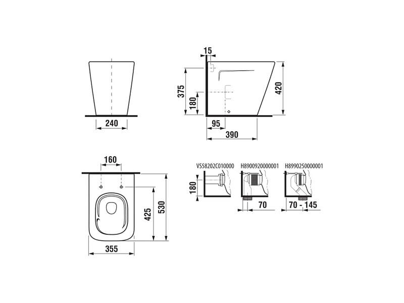 UPOZORNĚNÍ: Sedátko, nádržka ani splachovací tlačítko nejsou standardní součástí dodávky a je nutno je dokoupit zvlášť. Kompatibilní modely naleznete v PŘÍSLUŠENSTVÍ.