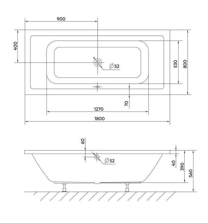 Vanová odtoková souprava a podpora vany nejsou součástí balení, je třeba je objednat zvlášť.