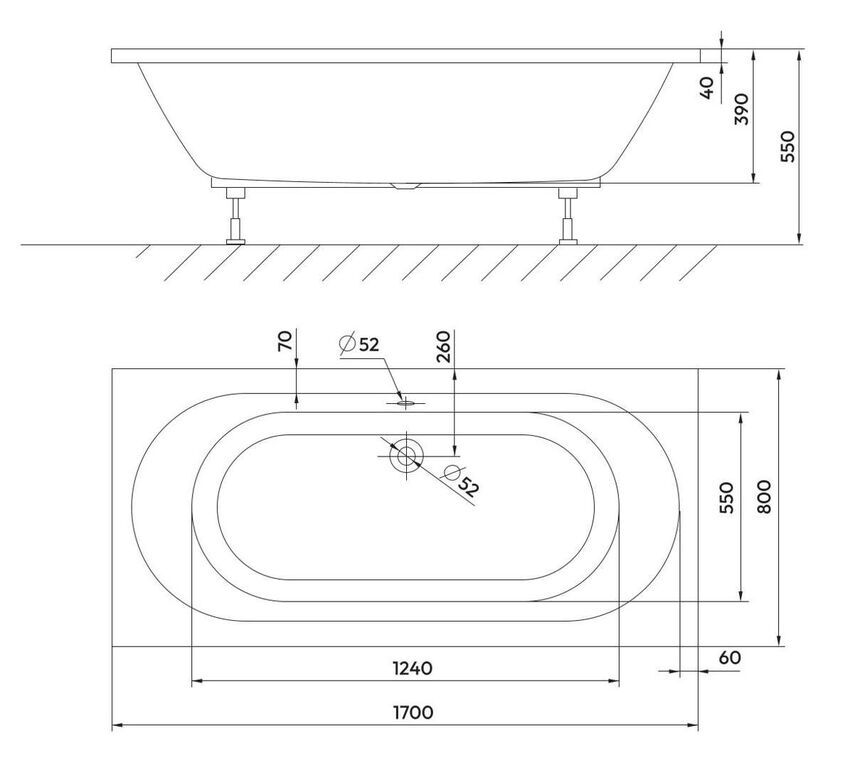 Vanová odtoková souprava a podpora vany nejsou součástí balení, je třeba je objednat zvlášť.