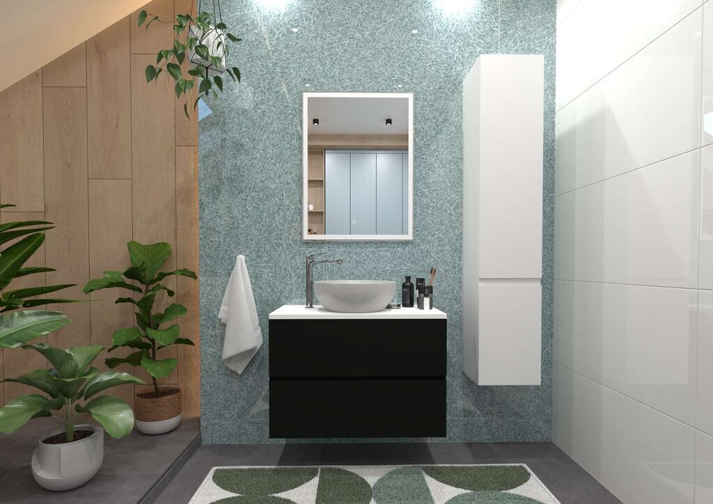 Ke zboží „kielle Oudee Skříňka včetně desky pod umyvadlo 80x55x46 cm, matná černá/lesklá bílá ještě nikdo nenapsal komentář. Buďte první!