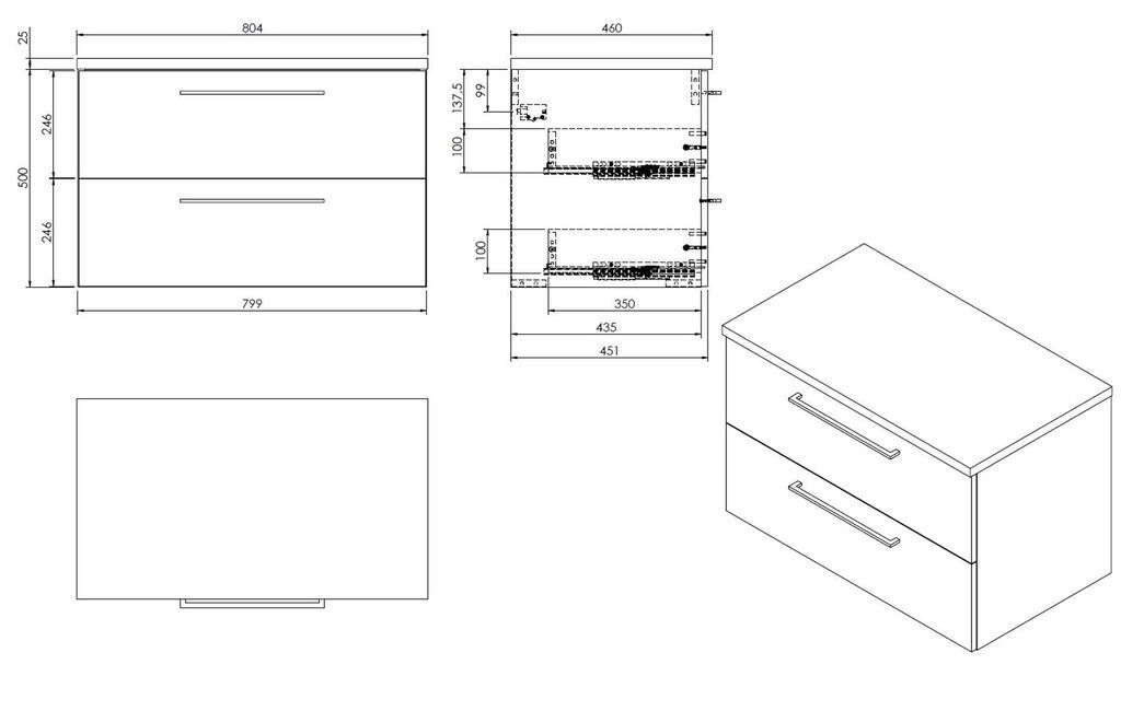 kielle Oudee Skříňka pod umyvadlo, 80x55x46 cm, 2 zásuvky, matná černá