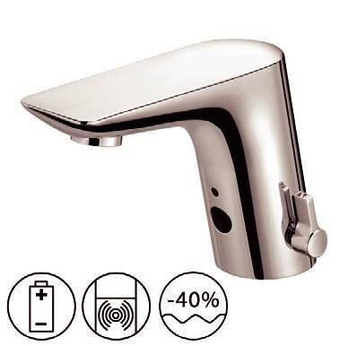 jednootvorová montáž, třída průtoku Z, průtok 8l/min, bezpečnostní PCA kaskádový perlátor M 24 x 1, magnetický ventil, s rukojetí na nastavení teploty, s optickou registrací objektu, elektronický modul s ukazatelem stavu baterie, 6V Lithium baterie CR-P2, omezovač zpětného toku, bez odpadové soupravy, rychlomontážní systém, flexibilní přípojky G 3/8 s filtrem na zachytávání nečistot, třída hluku I, chráněné proti vandalismu