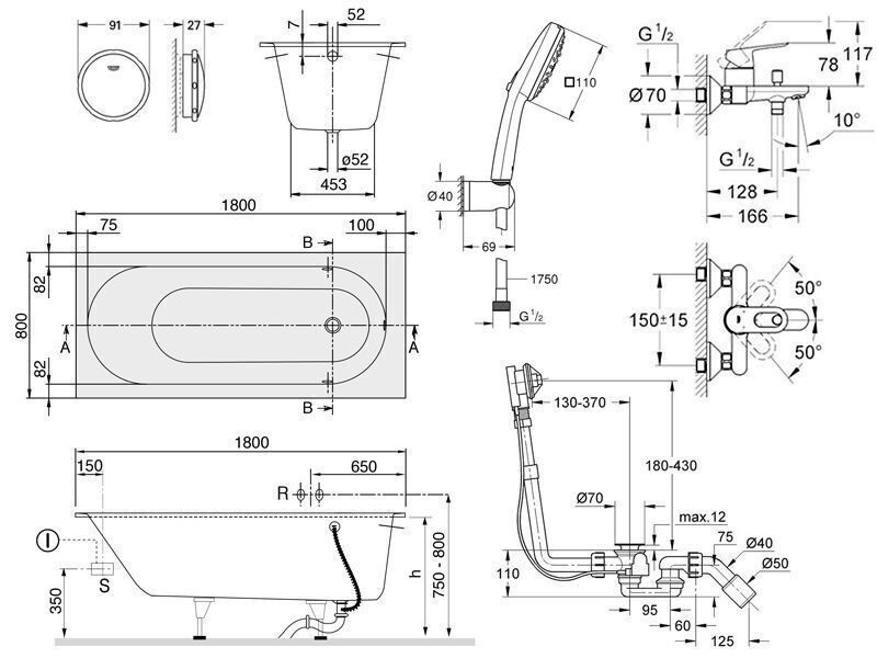 Nevíte si rady při výběru koupelnové vany a potřebných doplňků? Vyřešili jsme to zas Vás! Přinášíme Vám výhodný koupelnový set složený z obdélníkové koupelnové vany Villeroy & Boch Oberon, nástěnné vanové baterie Grohe BauLoop, sprchové soupravy Grohe Vitalio Comfort a odpadové a přepadové soupravy Grohe Talento a montážního setu pro odpadovou soupravu.