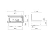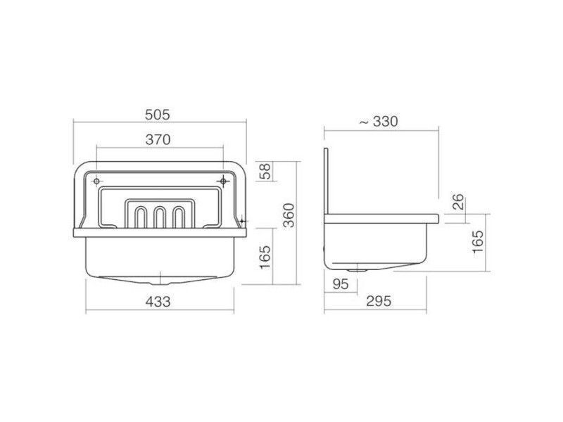 Závěsná výlevka Alape 505 bez otvoru pro baterii je určena k nástěnné instalaci. Díky rozměrům 505 x 362 x 330 mm poskytne výlevka dostatek prostoru ke každodennímu užívaní. Dlouhou životnost zajistí odolné tělo vyrobené ze silnostěnné oceli pokryté z vnější i vnitřní strany bílým smaltováním. Klasický design výlevky obohacuje lemování z vysoce odolné umělé hmoty v tmavě modrém provedení. Výlevka je opatřena odtokovým ventilem a zátkou.