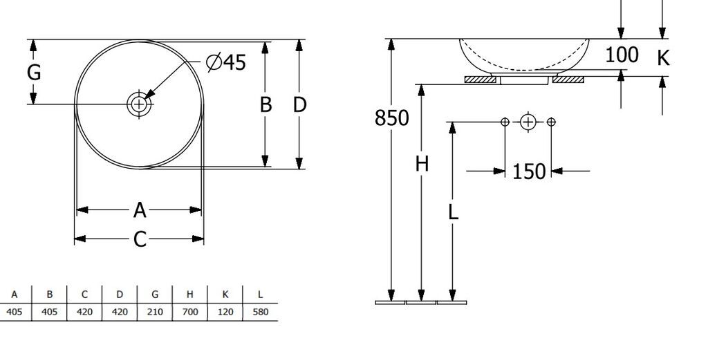 Umyvadlo k postavení na desku nebo koupelnovou skříňku