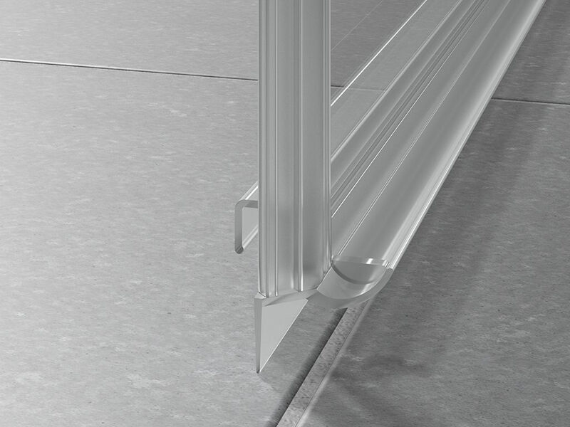 Bezpečnostní sklo 6 mm s povrchovou úpravou KermiClean, sklo čiré, profil stříbrná vysoký lesk. tloušťka skla 6 mm s povrchovou úpravou Kermi Clean, hliníkové profily, povrchová úprava stříbrná lesk.