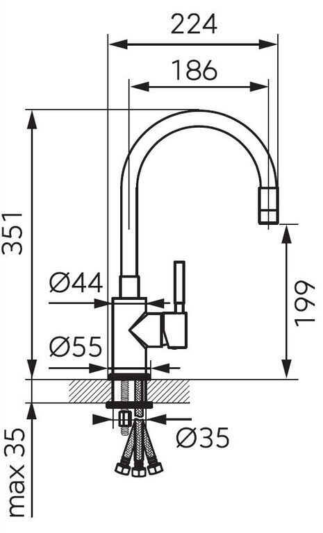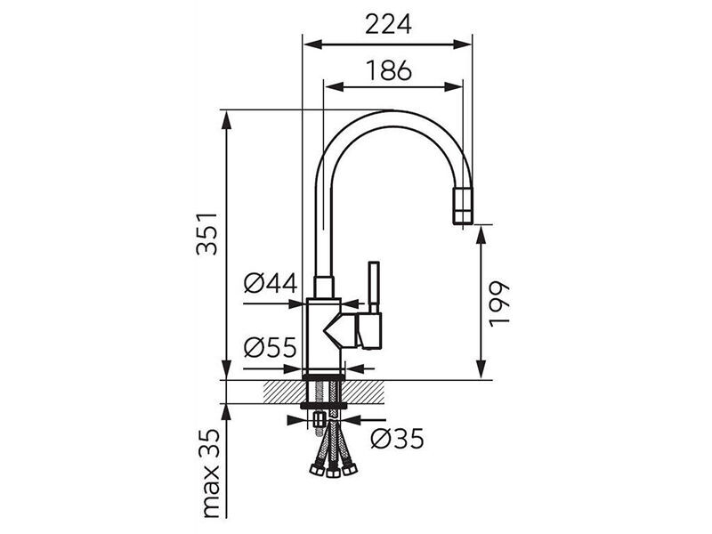 | Dosah výtokového ramene [mm] | 150-350 mm |