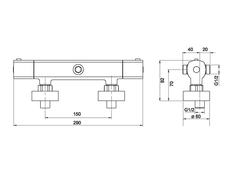 Sprchová nástěnná termostatická baterie Metalia 58, rozteč 15 cm, s horním a dolním vývodem, povrch chrom.