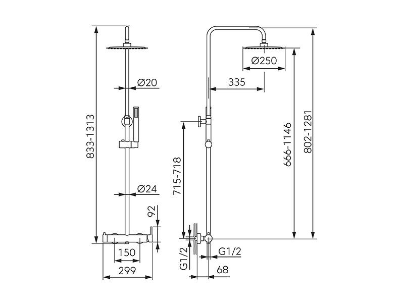 | Výška tyče pevné sprchy [mm] | 802-1146 mm |