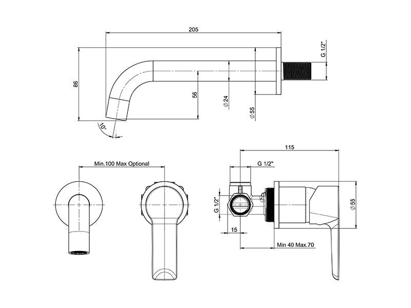 Podmítková umyvadlová baterie Ponta Style, dvouotvorová, materiál mosaz, povrch chrom.