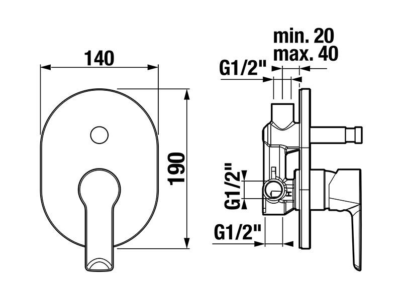 Podomítková vanová baterie páková, rozeta 14x19 cm, připojení G 1/2", přepínač vana/sprcha, materiál kov, povrch černá mat.