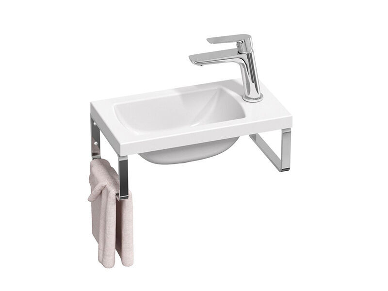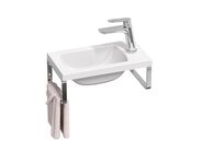 Konzoly pro uchycení umývátka Ravak Classic 400. Kovové konzoly jsou opatřeny chromovanou povrchovou úpravou, a kromě jejich primárního účelu zajištění stability umývátka jistě oceníte i jejich přidanou hodnotu v podobě praktického držáku ručníků.