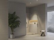 V řadě sprchových koutů Roll najdete také oblíbené „walk-in" provedení. Posuvný díl může být většinu času zasunutý, takže v prostoru nepřekáží a koupelna působí vzdušněji. Při sprchování jej jednoduše vysunete a získáte širokou, funkční sprchovou zástěnu.