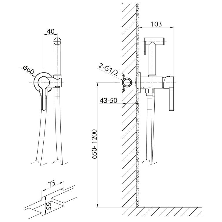 Sapho CUBEMIX podomítková bidetová baterie se Stop sprškou, hranatá, chrom