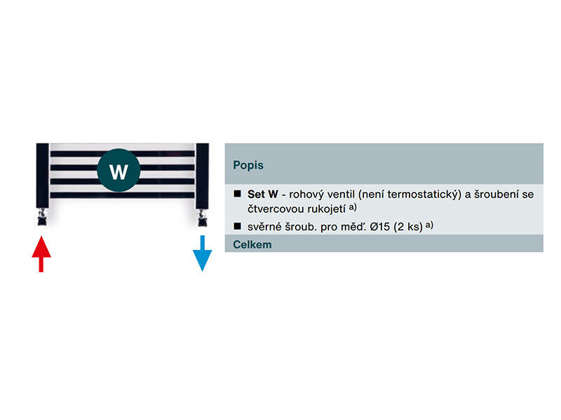 Rohový ventil a šroubení pro zpátečku 1/2", Set W se čtvercovou rukojetí (ventil není termostatický), vč. 2 ks svěrných matic 3/4" Eurokonus / Ø 16,8 mm, povrch chrom.