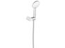 Sprchová minisouprava s 3polohovou úspornou růžicí s průtokem 9 l/min., která umožňuje efektivní šetření vody bez omezení komfortu sprchování. Součástí je plastová hadice o délce 150 cm s Antitwist systémem, který zabraňuje překrucování při každodenním používání, a výklopný držák pro snadné nastavení směru sprchy.