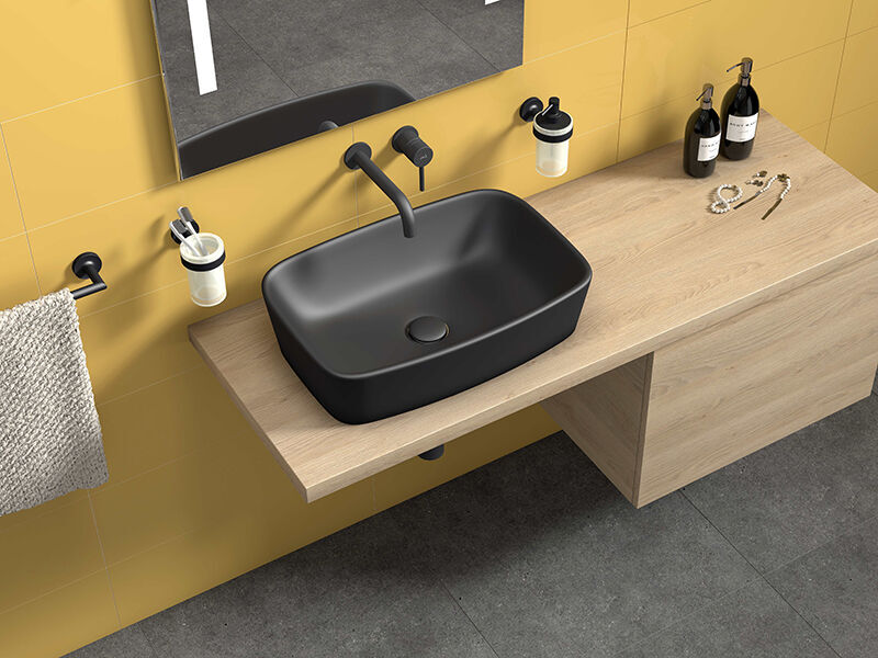 Umyvadlová mísa Lyra Plus, rozměr 55x38x14 cm, bez přepadu, s broušenou spodní stranou - k instalaci na umyvadlovou desku, materiál sanitární keramika, barva černá mat.