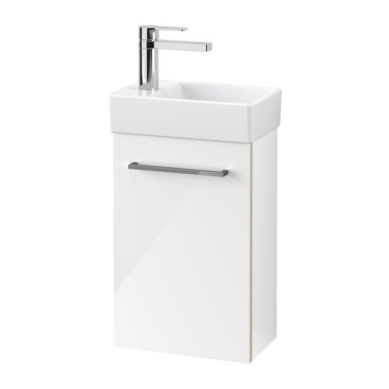 Závěsná skříňka pod umyvátko Avento, rozměry 34x51,4x20,2 cm, materiál MDF, 1x dvířka, panty vlevo, barva Crystal White - lesklá bílá.