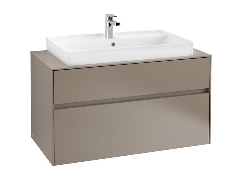 Ke zboží „Villeroy & Boch Collaro skříňka pod umyvadlo, 100x50x54,8 cm, otvor uprostřed, 2x zásuvka, Truffle Grey ještě nikdo nenapsal komentář. Buďte první!