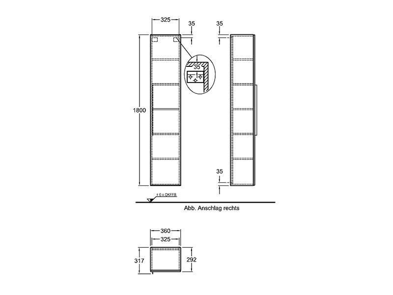 Vysoká boční skříňka závěsná Keramag iCon o rozměrech 36 x 180 x 30,9 cm je dodávána v bílé povrchové úpravě. Závěsy dvířek jsou variabilně stavitelné pro levé/pravé otevírání dvířek. Elegantní bílý design skříňky je doplněn jemnou chromovanou úchytkou. Vnitřní prostor skříňky je rozdělen jednou pevnou a čtyřmi polohovatelnými policemi.