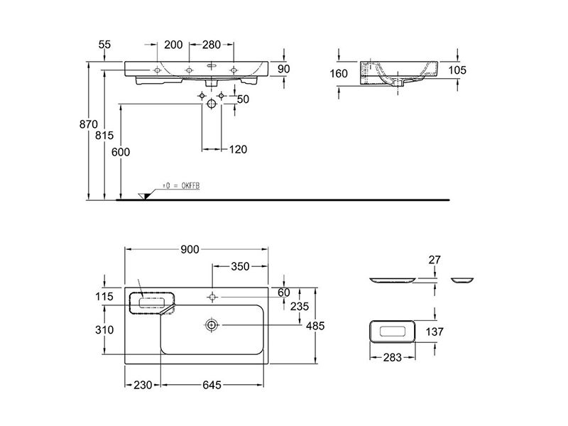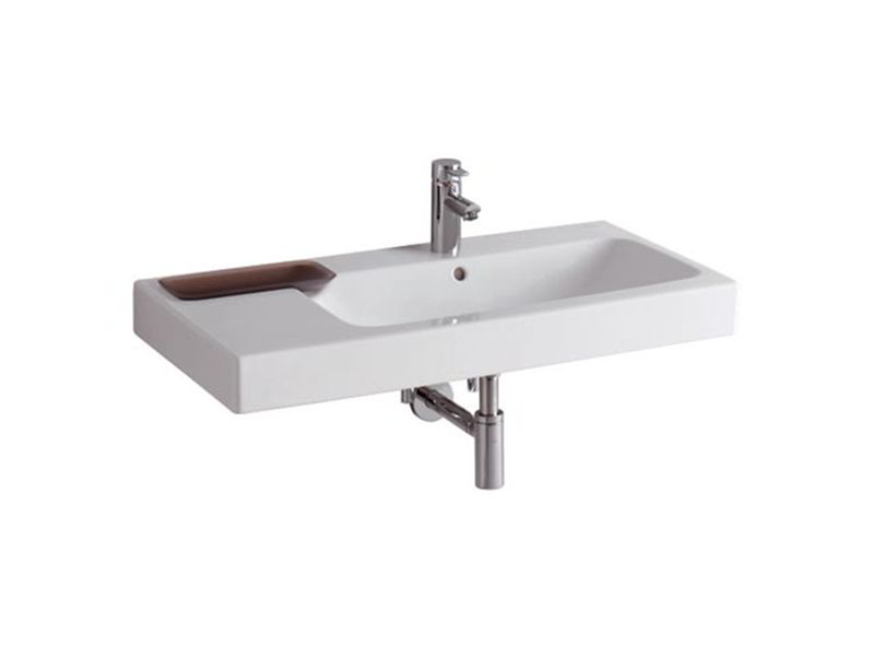 Jednootvorové umyvadlo na skříňku Keramag iCon o rozměrech 90 x 48,5 x 9 cm a hmotnosti 26,2 kg je vyrobeno ze sanitární keramiky ošetřené bílou povrchovou úpravou. Umyvadlo disponuje přepadem, otvorem pro baterii a odkládací plochou. Povrch umyvadla je ošetřen keramickou glazurou KeraTech vypálenou při teplotě 1200 °C. Takto ošetřený povrch je mimořádně hladký a lesklý, zabraňuje usazování nečistot, vodního kamene a bakterií, což výrazně snižuje nároky na údržbu a zároveň zvyšuje hygienický standard koupelny. Glazura KeraTech, navíc díky své mimořádné tvrdosti, chrání umyvadlo proti opotřebení a zabraňuje vzniku mikroškrábanců.