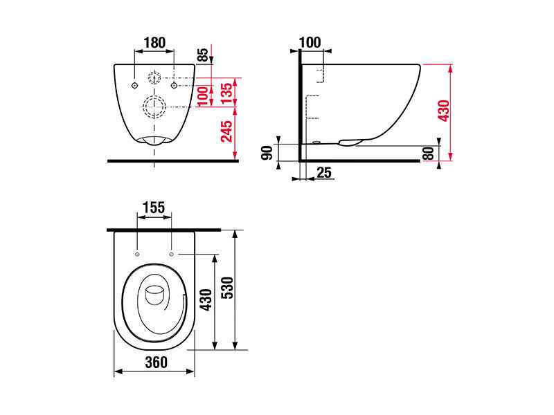 Závěsné WC Mio-N, rozměry 53x36x35 cm, Rimless, Vortex, hluboké splachování, vodorovný odpad, instalační sada Easyfit je součástí dodávky, materiál sanitární keramika, povrchová úprava Jika Perla, barva bílá.